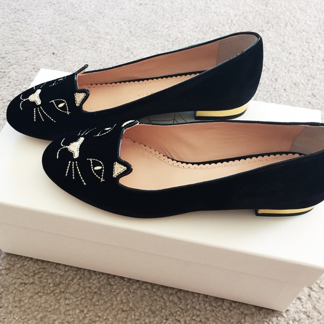 这次小猫鞋也直接参加打折了,一双经典小猫鞋差不多就可以直接7.5折,折后不到$400,真的很划算!Charlotte Olympia 一直很火爆,呆萌可爱的猫咪图案,平底穿上超级舒适,逛街旅游暴走毫无压力!手工天鹅绒~ 显得很高级,也很好搭衣服,现在穆勒鞋上新了,今年这种款式特别的火呦,配上百搭的小猫脸,夏天也可以穿啦。