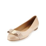 Salvatore Ferragamo Varina Patent Leather Bow Flat, New Bisque