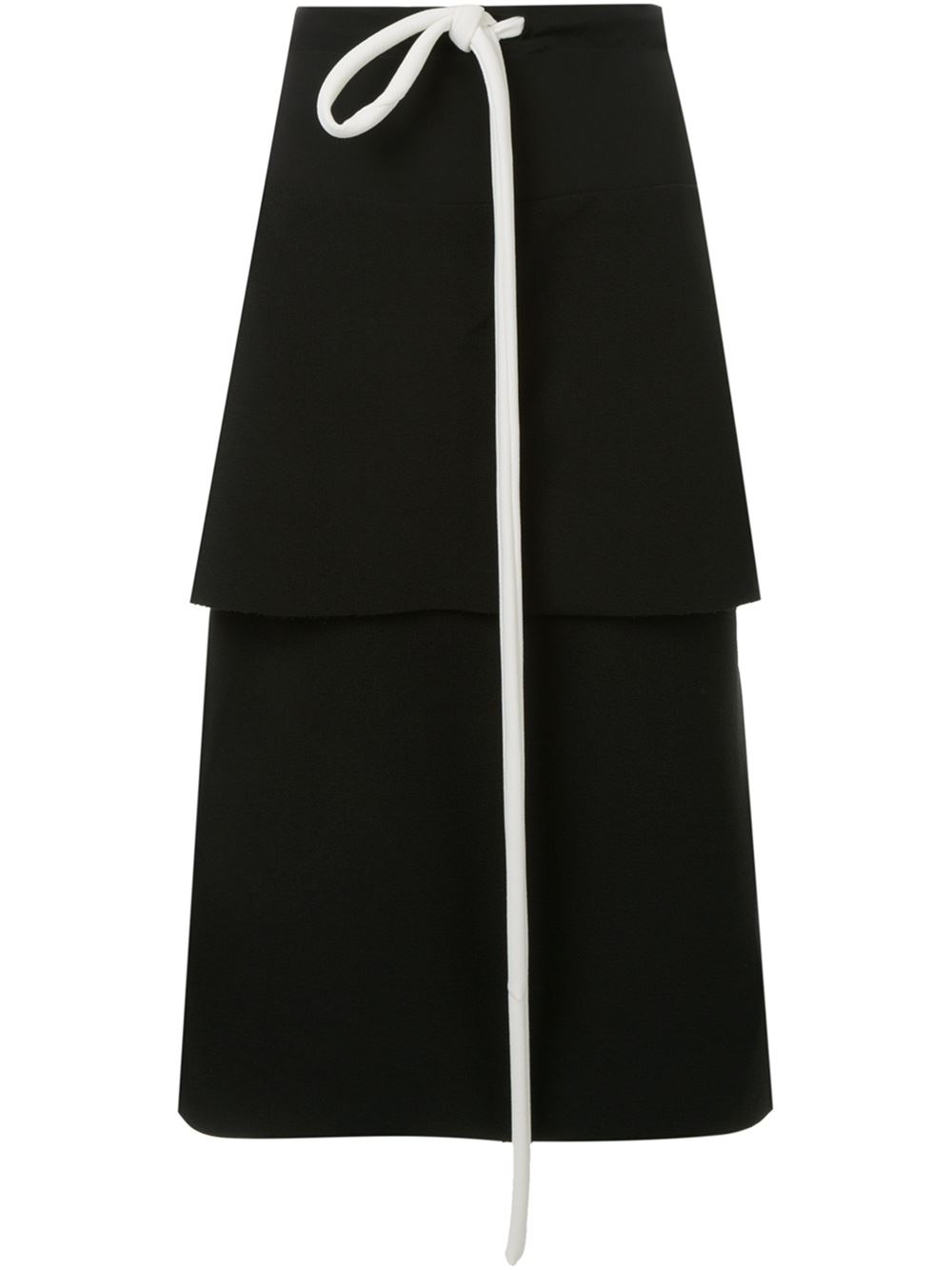 - Christopher Esber 黑色 丝绸 系腰带半身裙。