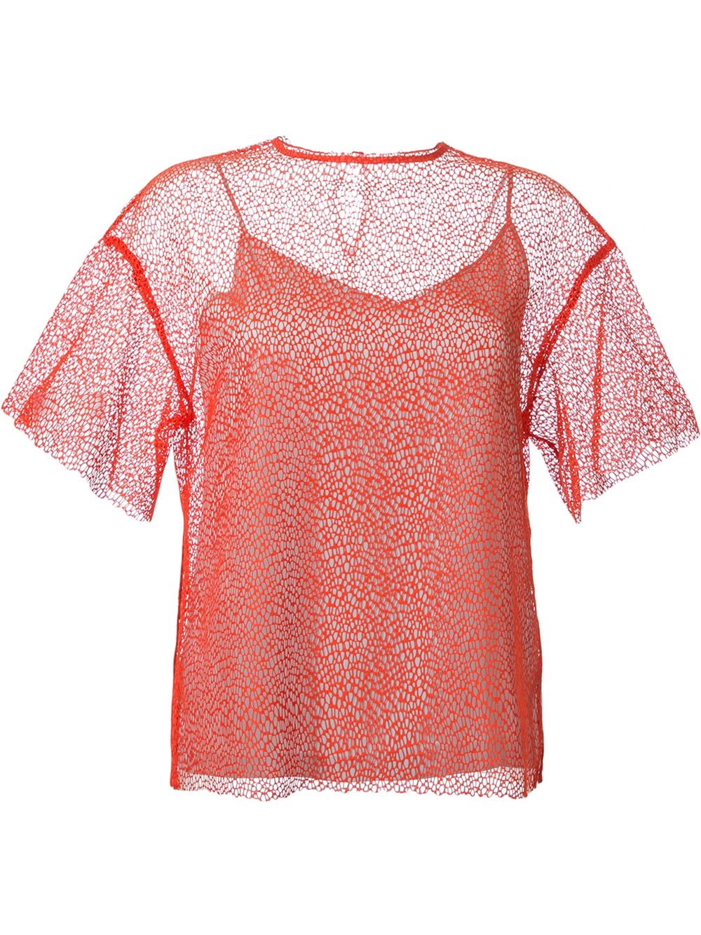 - Le Ciel Bleu 橘色 网纱蕾丝T恤。