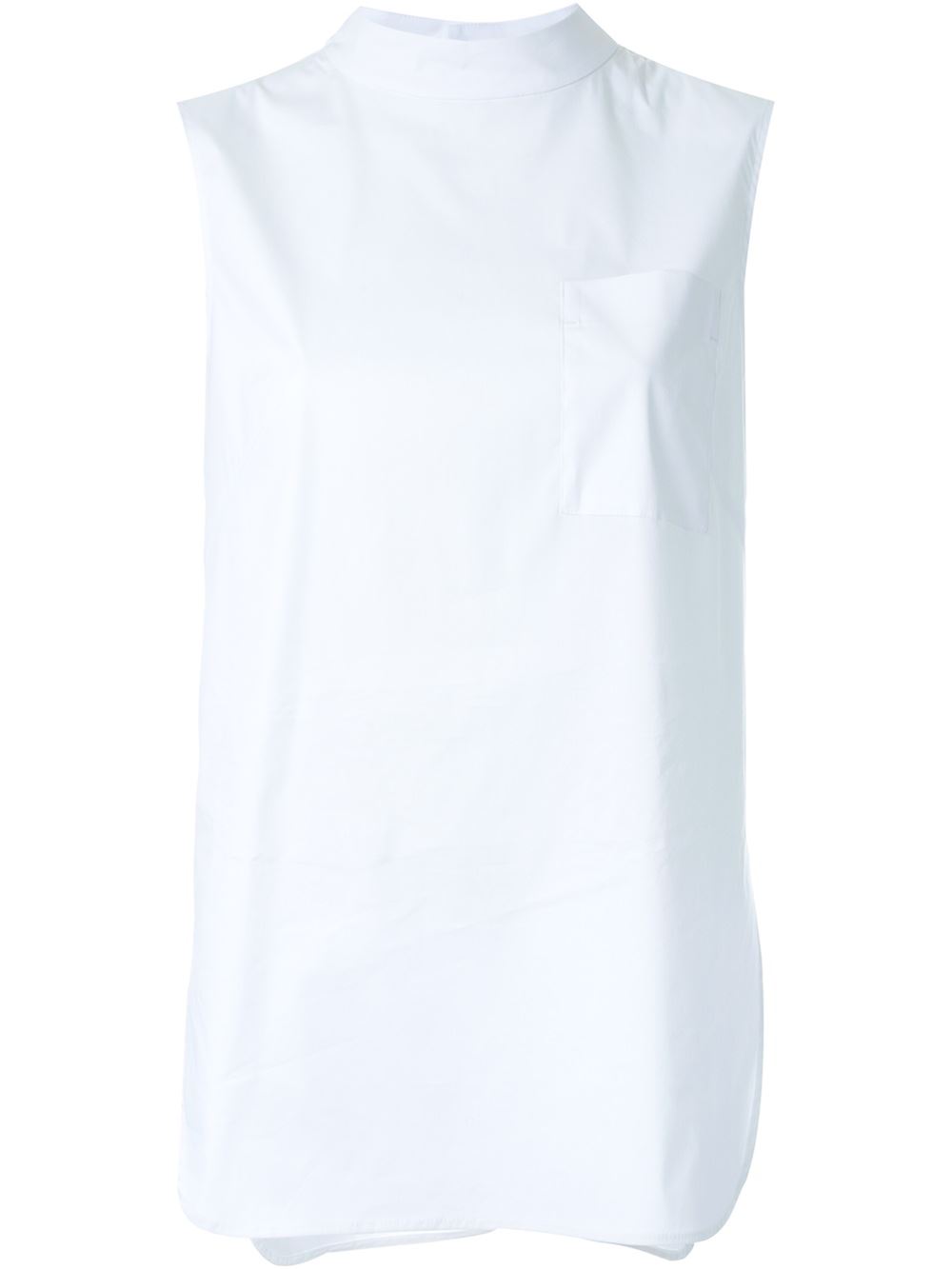 - Le Ciel Bleu 白色 棉质混纺 高领上衣。