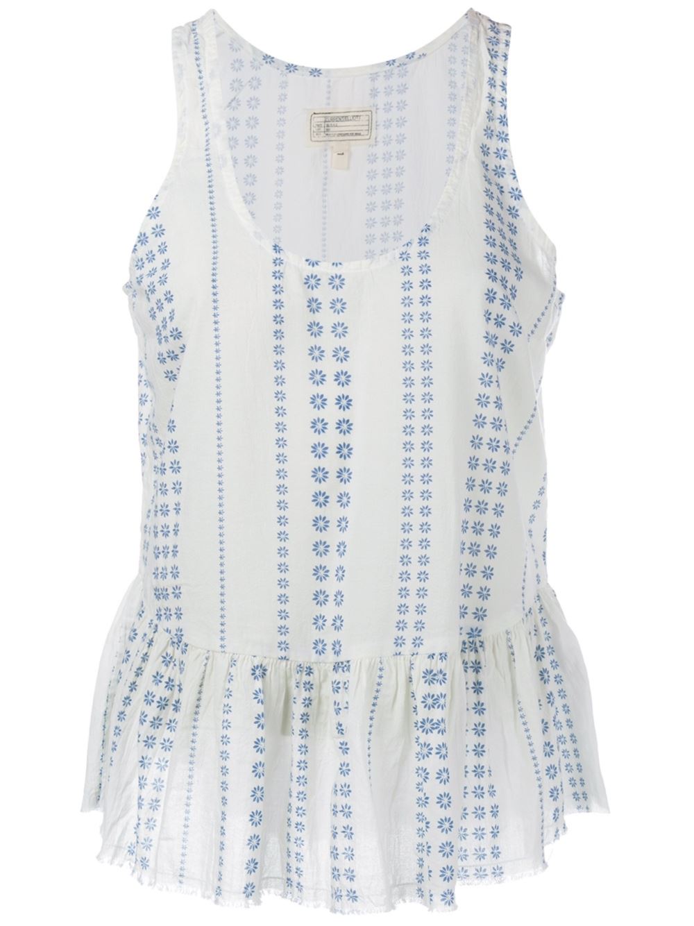 - Current/Elliott 白色 全棉 'Daisy Stripe'坦克上衣。 U领, 荷叶下摆。
