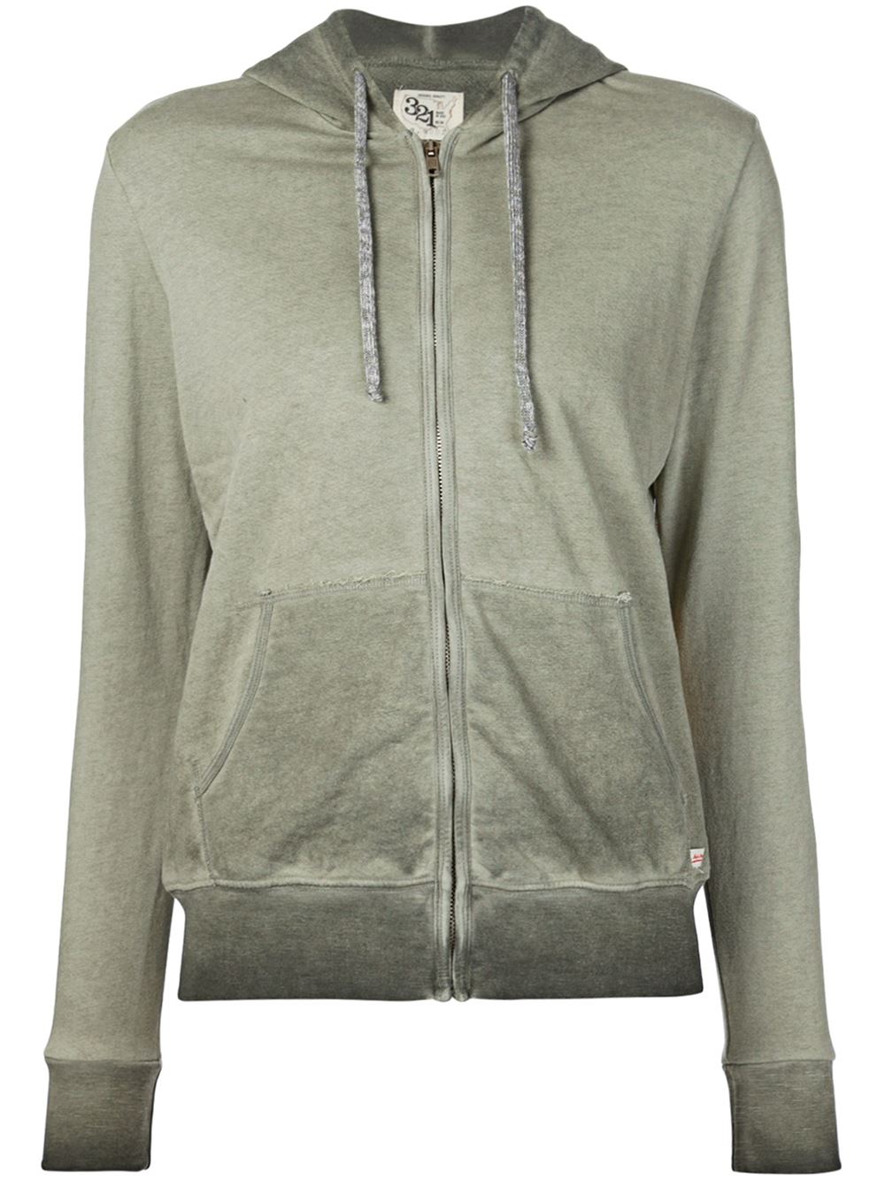 - 321 橄榄绿色 棉质混纺 磨洗连帽衫。
