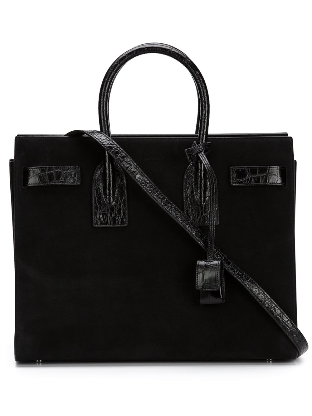 - Saint Laurent 黑色 绒面皮与牛皮 'Sac de Jour'小号手提包。 长方形, 顶部有弧状手柄, 可拆卸可调肩带, 皮质吊牌, 双边可延展, 带浮雕及鳄鱼皮效果, 内置拉链口袋。