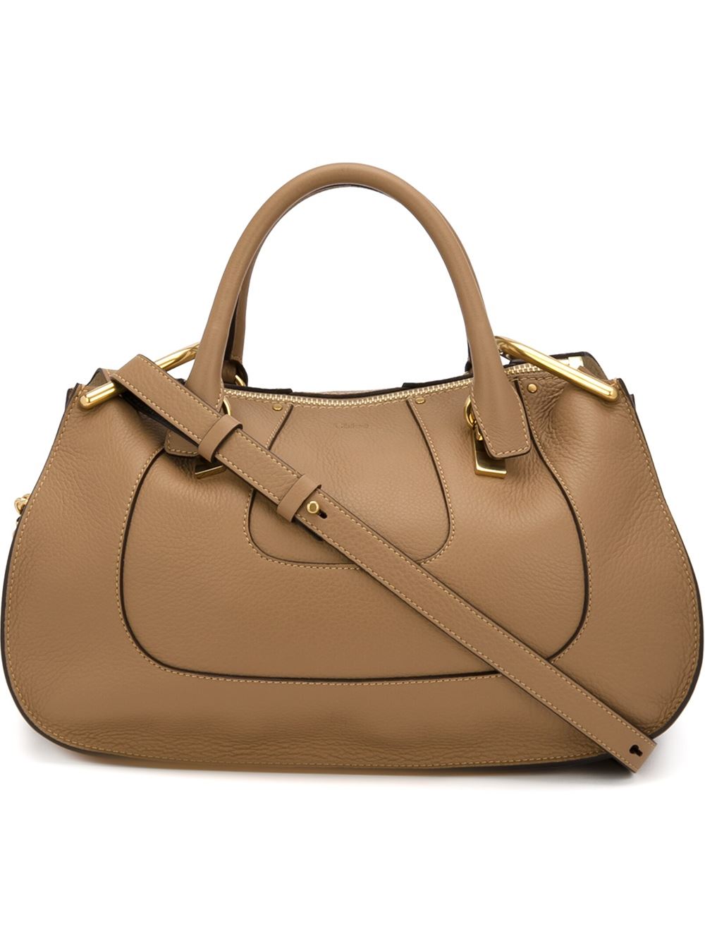 - Chloé 褐色 小牛皮 'Hayley'手提包。 顶部有弧状手柄, 可拆卸可调肩带, 正中有品牌标记, 金色五金配件, 顶置拉链, 内置拉链口袋, 内置标贴。