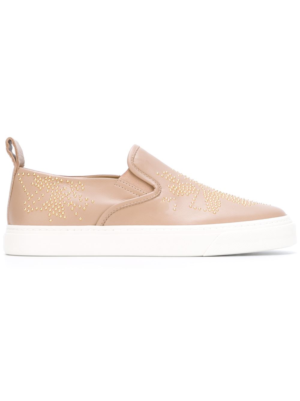 - Chloé 粉色 牛皮 'Susanna'无带板鞋。 杏仁形鞋尖, 侧面采用弹性松紧拼接, 后置提鞋环, 鞋垫饰有品牌浮雕, 白色橡胶质鞋底。