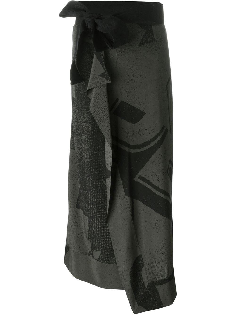 - A.F.Vandevorst 军绿色 弹性丝绸 裹身半身裙。
