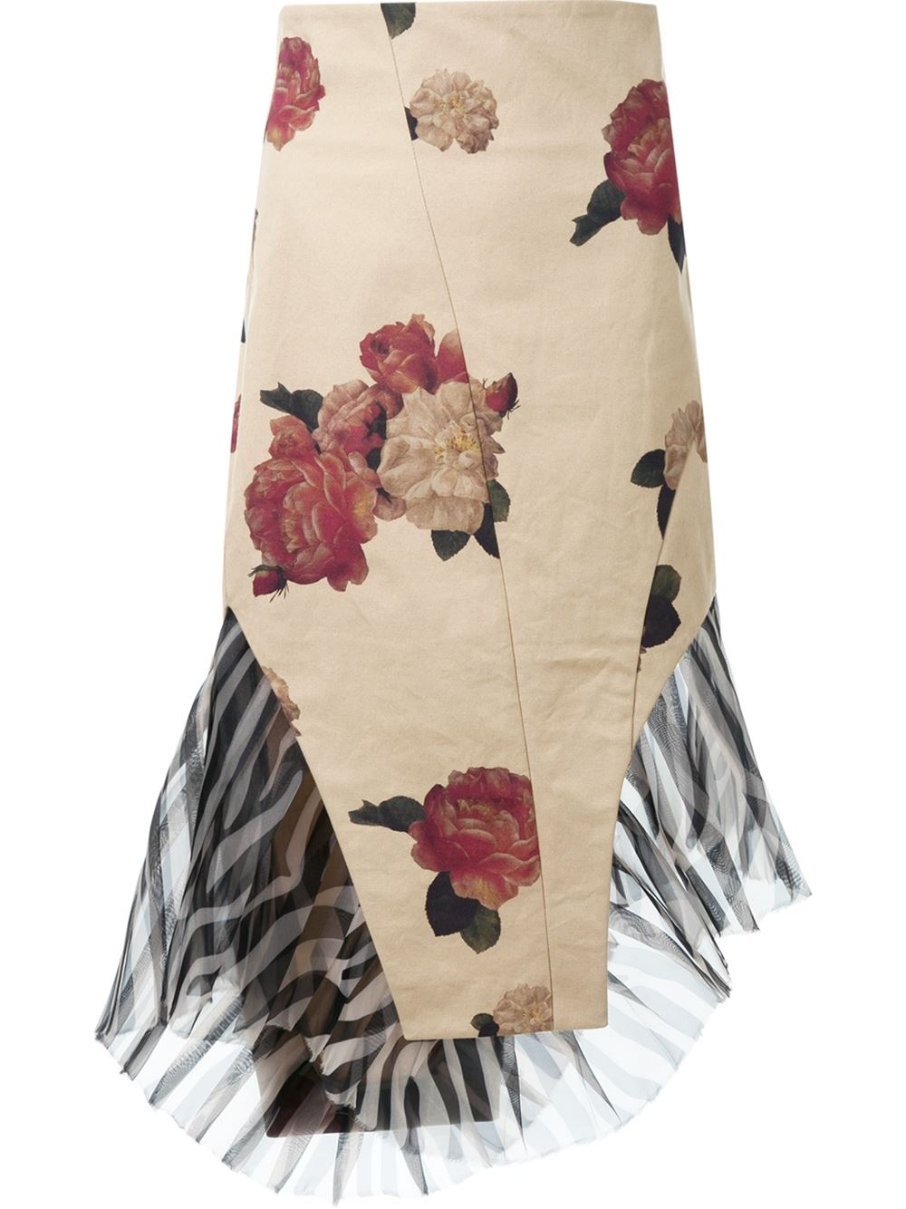 - Awake 米色 全棉 花卉印花拼接半身裙。