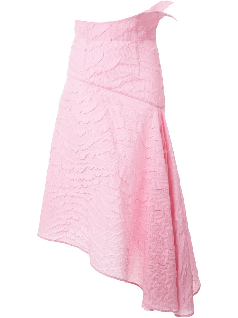 - Awake 粉红色 棉质与丝绸混纺 'Matelassé‘不对称半身裙。