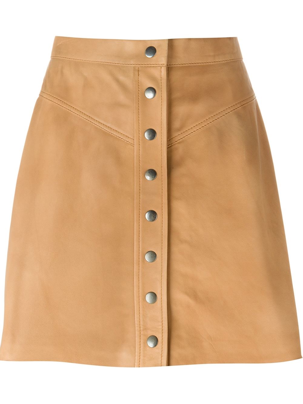 - Muubaa 褐色 小羊皮 排扣半身裙。