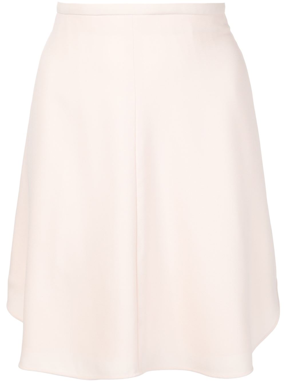 - Chloé 浅粉色 丝绸 高腰半身裙。 隐藏式开合, 喇叭半身裙, 下摆不对称, 短款。