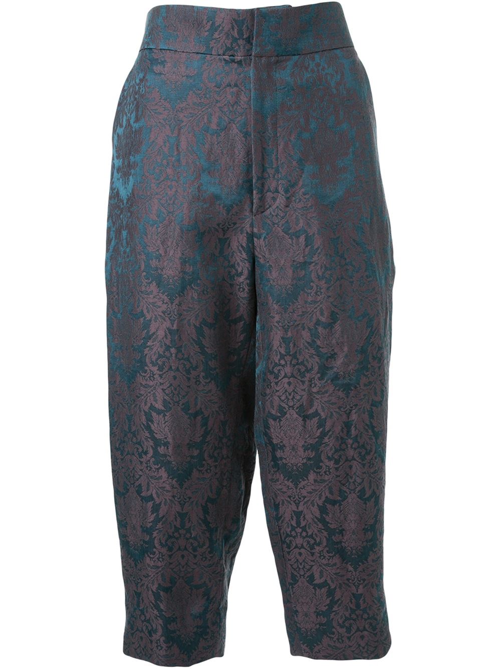 - Aganovich 绿色与紫色 麻质丝绸混纺 提花九分长裤。