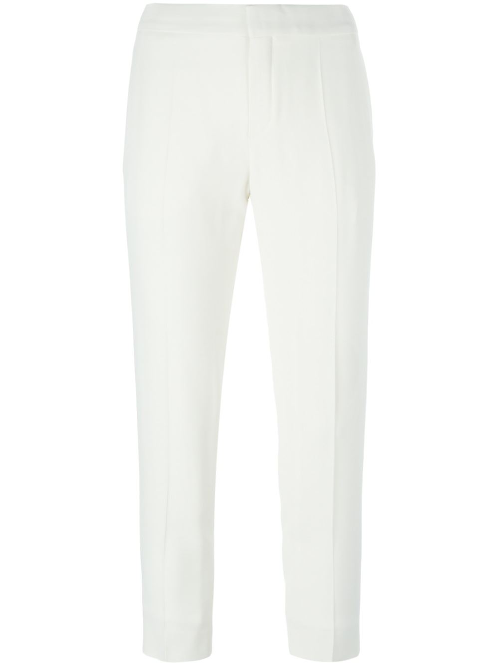 - Chloé 浅米色 丝绸 九分裤。 高腰, 腰边, 隐藏式正面开合, 侧置口袋, 后面有平袋, 超窄腿, 短款。