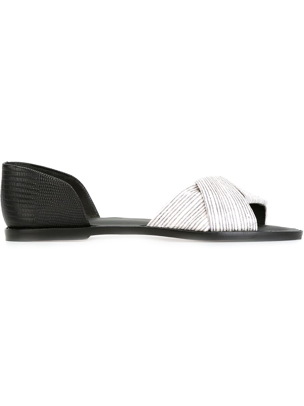 - Vince 黑色与白色 牛皮 条纹平底凉鞋。