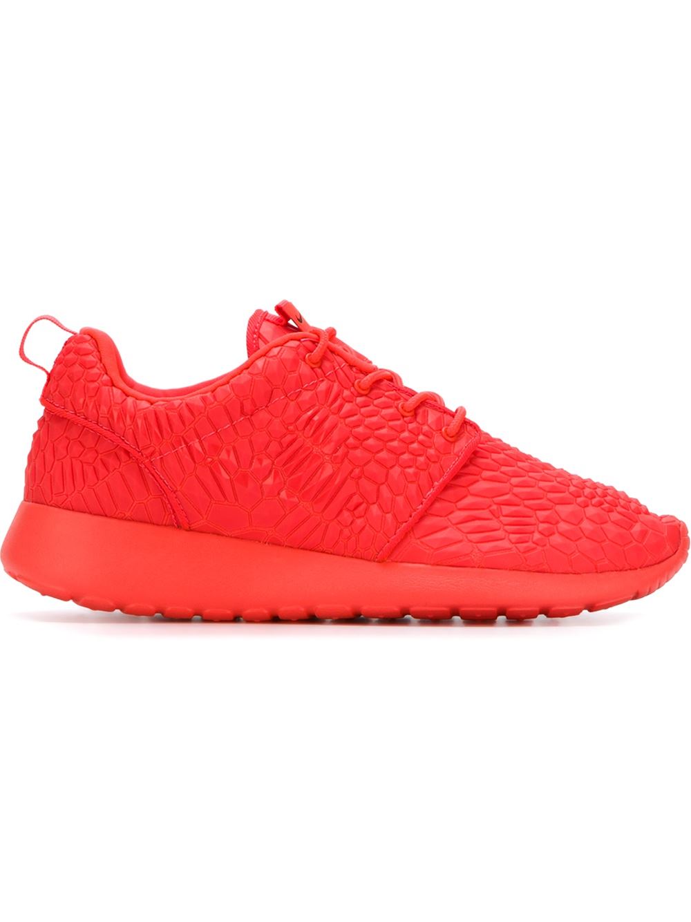 - Nike 红色 'Roshe One DMB'运动鞋。 圆头, 正面绑带, 鞋舌部位附有标贴, 粗质感皮革, 后置提鞋环, 平底橡胶鞋底。