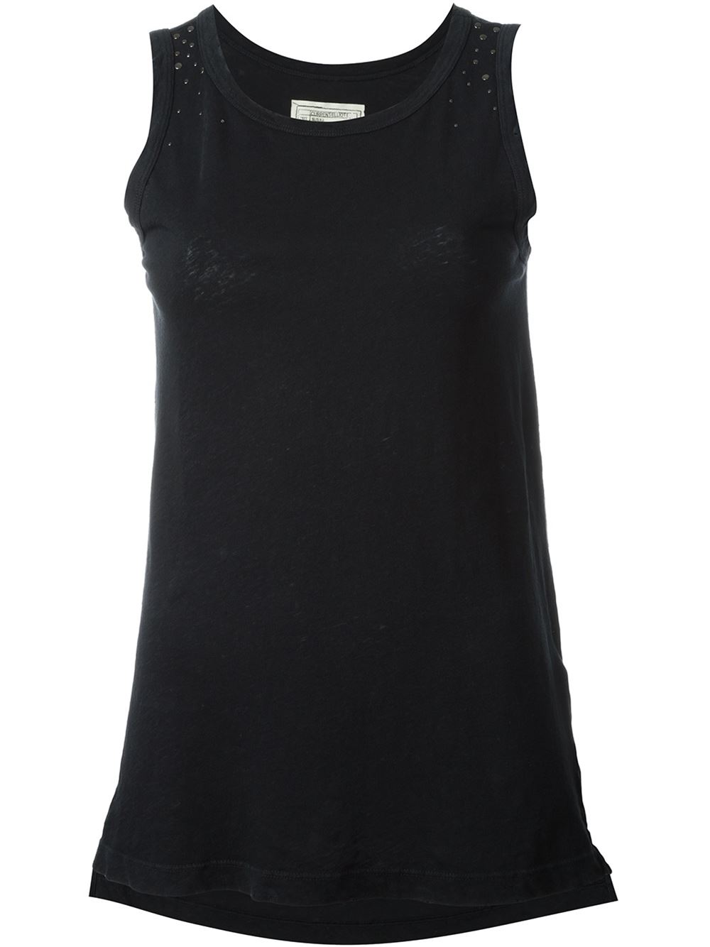 - Current/Elliott 黑色 棉质麻质混纺 铆钉上衣。