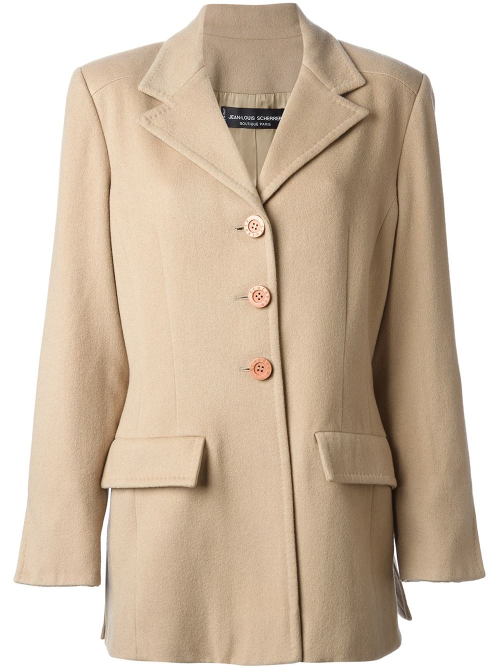 - Jean Louis Scherrer Vintage 驼色 羊毛 合身夹克. 梯型翻领. 长袖. 搭扣袖口. 正面纽扣. 两个正面盖袋. 侧置开衩.请注意古着(vintage)商品并非新的,因此可能有轻微的瑕疵。