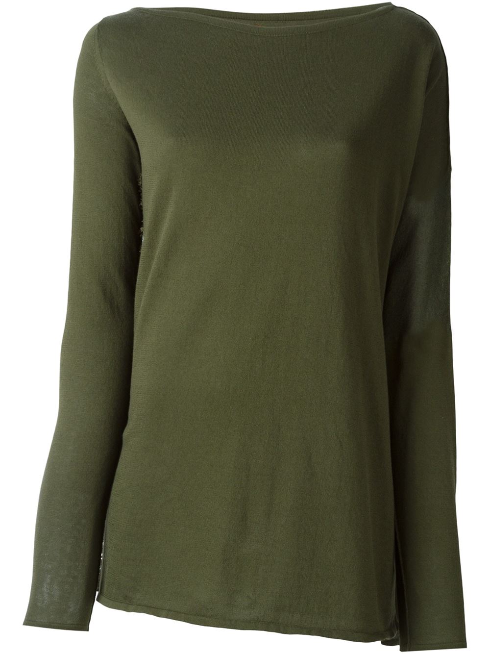 - A.F.Vandevorst 军绿色 全棉 '161 Tatami'套头衫。 一字领, 长袖, 下摆不对称。