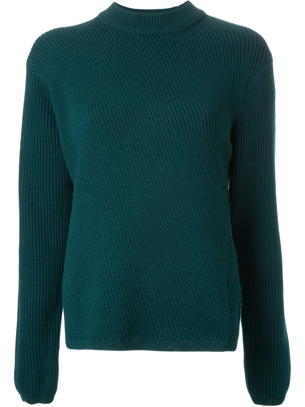 - Le Ciel Bleu 深绿色 棉质混纺 斜罗纹毛衣。