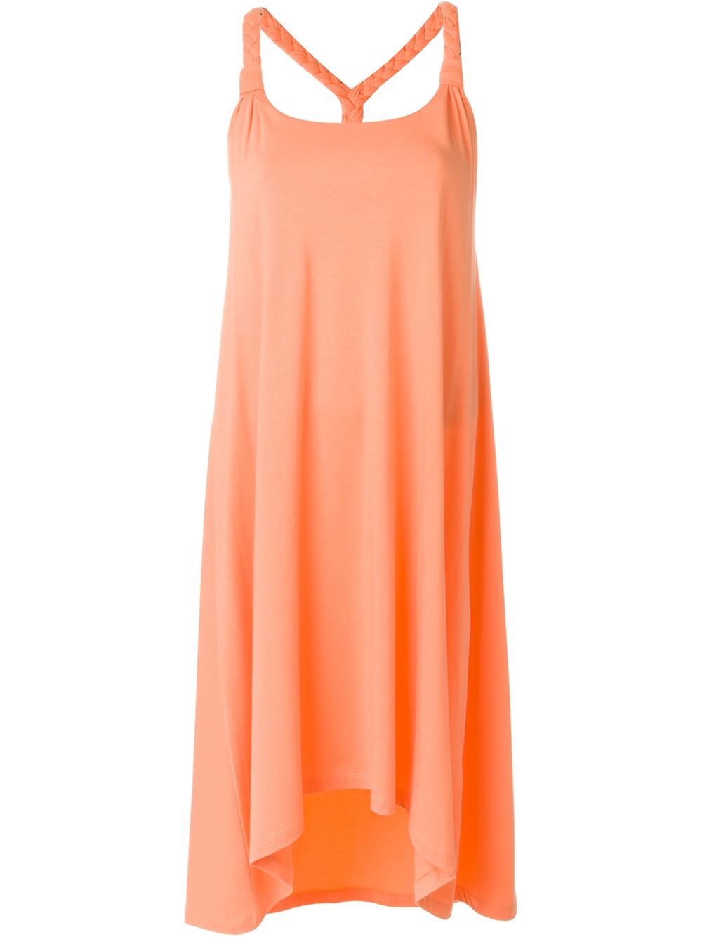 - Coral pink plait back dress from Heidi Klein.