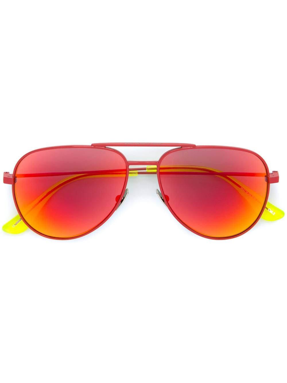 - Saint Laurent 粉色与黄色 'Classic 11 Surf'太阳眼镜。 飞行员风镜框, 渐色镜片, 弧角尾镜腿。