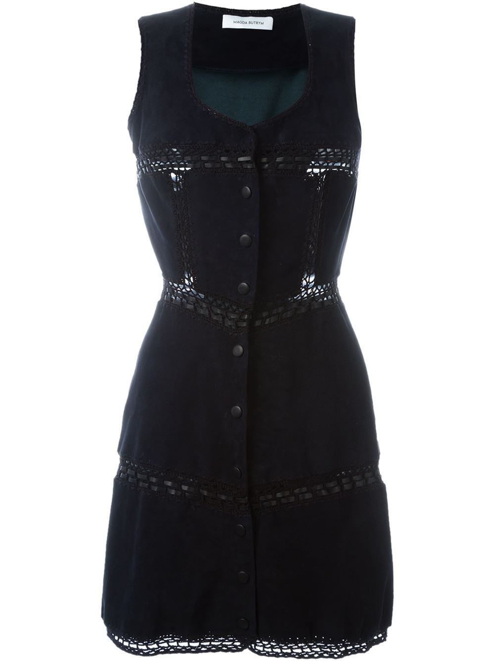 - Magda Butrym 海军蓝 丝绸与小羊皮 无袖连衣裙。