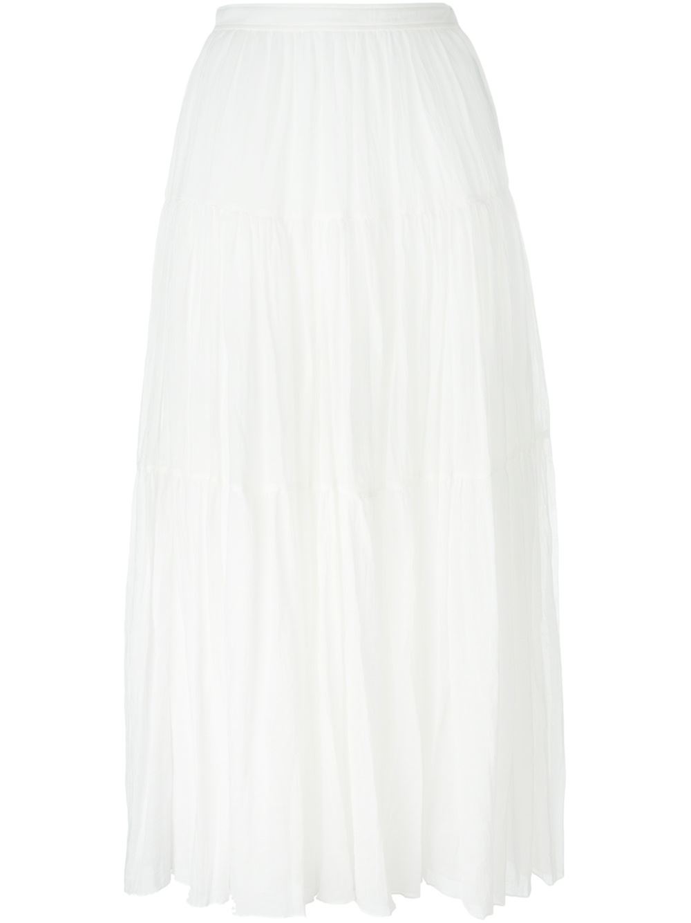 - Saint Laurent 白色 全棉 超长高腰半身裙。 高腰, 腰边, 百褶细节, 长款。