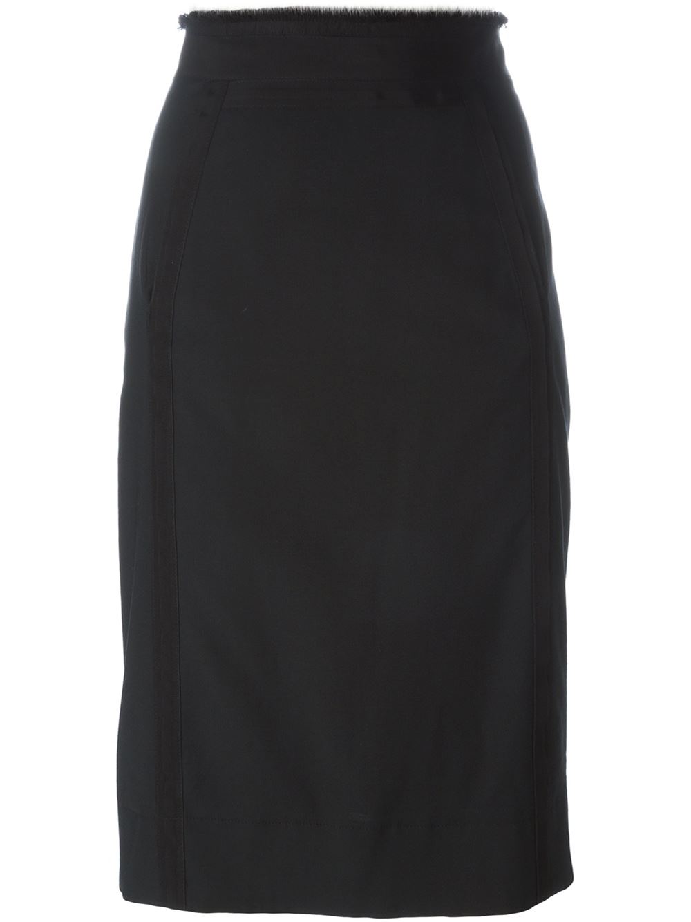 - A.F.Vandevorst 黑色 初见羊毛混纺 '161 Sky'半身裙。 高腰, 磨损收边, 后置隐形式拉链, 及膝, 下摆后置开衩。