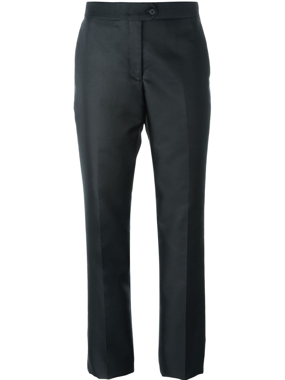 - Yang Li 黑色 丝绸混纺 修身长裤。 无腰带袢。