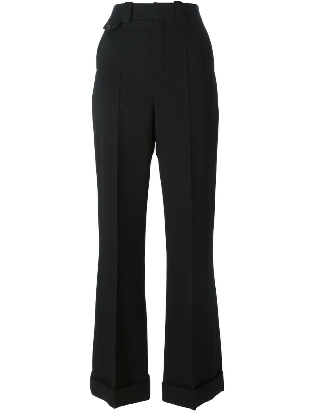 - Chloé 黑色 羊毛与丝绸混纺 高腰长裤。 隐藏式开合, 系腰带袢腰边, 后面有平袋, 下摆采用密缝。