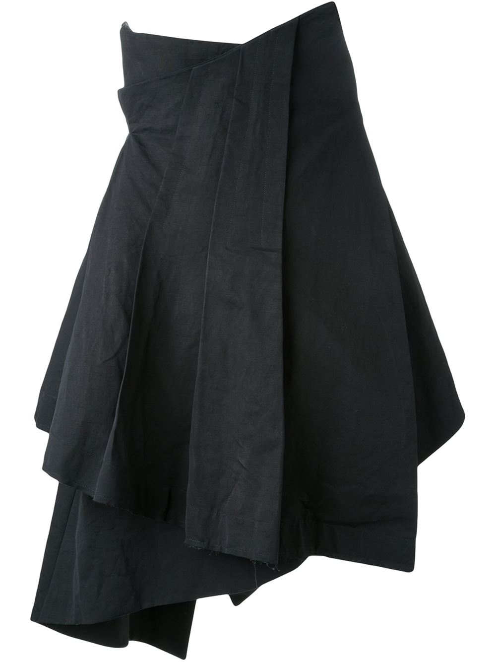 - Aganovich 黑色 麻质棉质混纺 不对称半身裙。