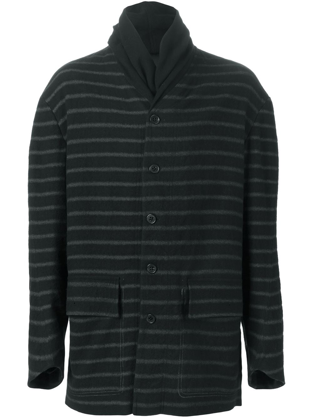 - Damir Doma 黑色 初剪羊毛混纺 'Jasek'围巾领夹克。 正面纽扣, 两个正面盖袋, 长袖。