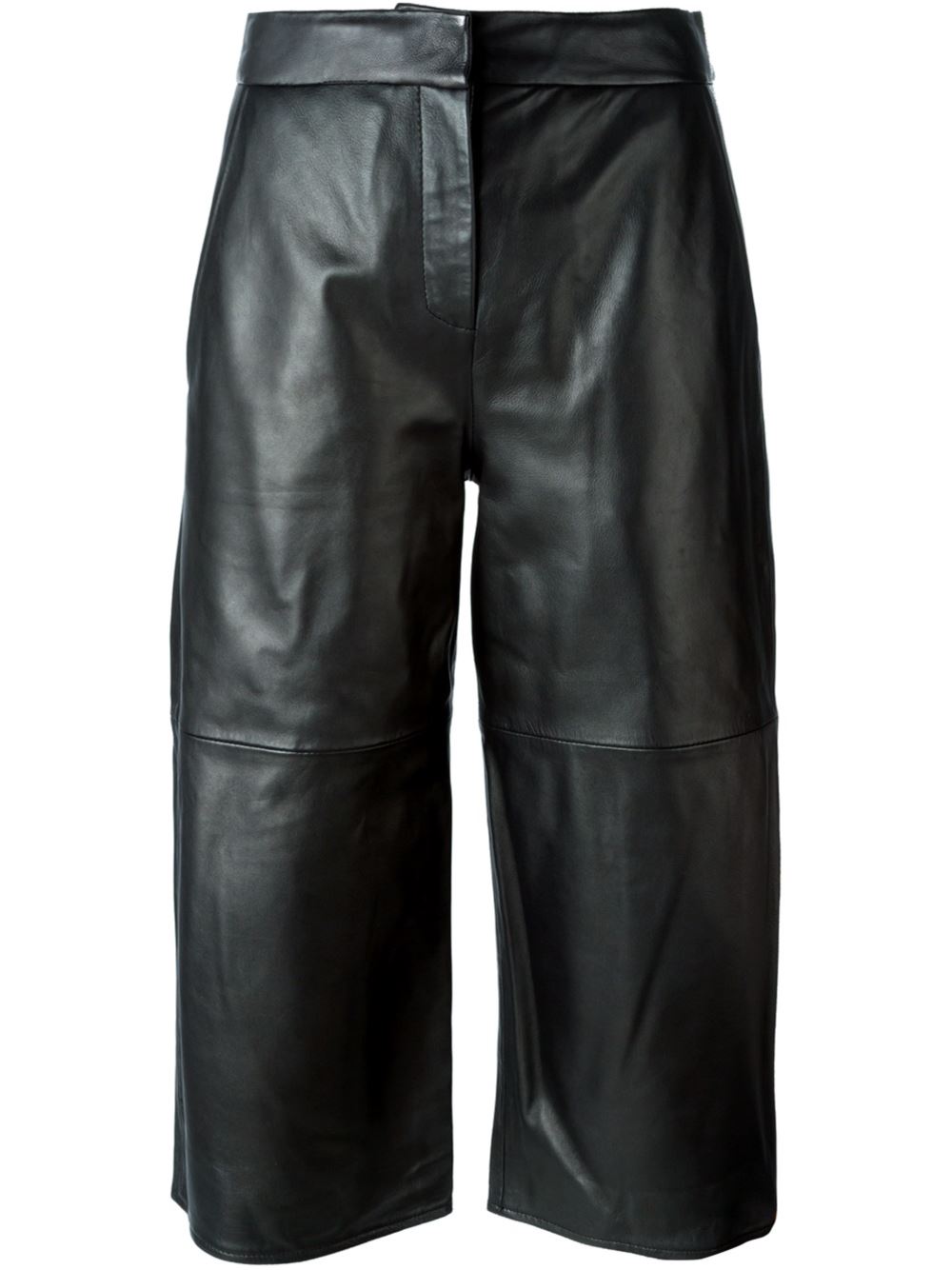 - Muubaa 黑色 羊皮 'Riley'裤裙。 暗口门襟, 侧身口袋, 短款。