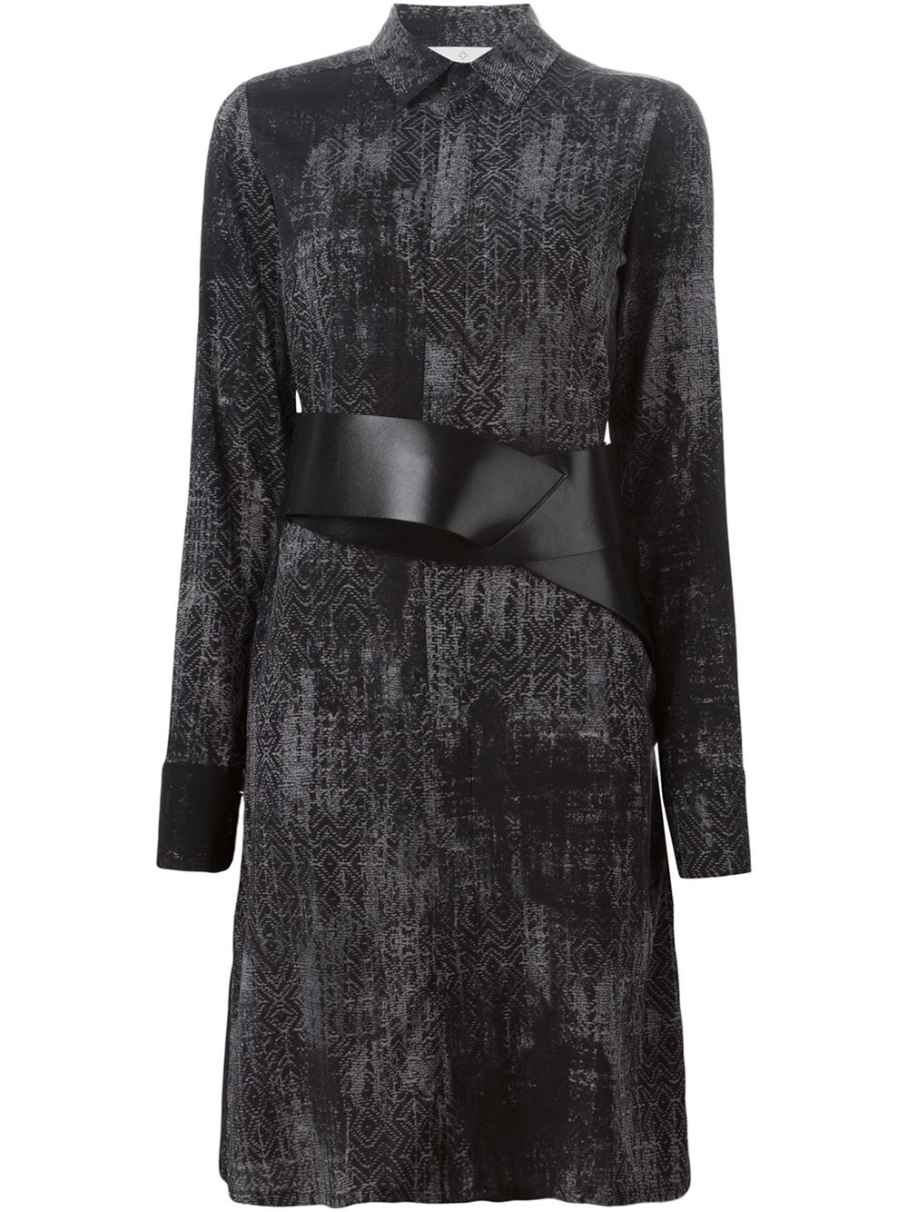 - A.F.Vandevorst 灰色 丝绸 '152 Debutante'衬衫式连衣裙。 经典衣领, 长袖, 暗扣, 搭扣袖口, 中长。