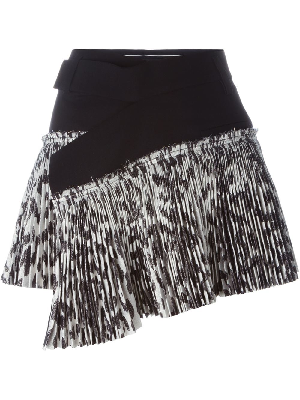 - Haider Ackermann 黑色与白色 弹性初剪羊毛棉质丝绸 迷你百褶裹身式半身裙。 豹纹。