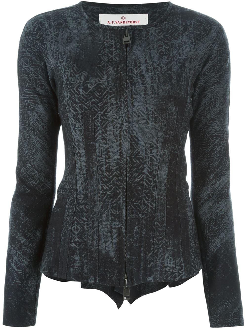 - A.F.Vandevorst 灰色 羊毛混纺 '152 Amazonian'拉链开衫。 圆领, 长袖, 束腰, 针脚细节, 垂褶细节。