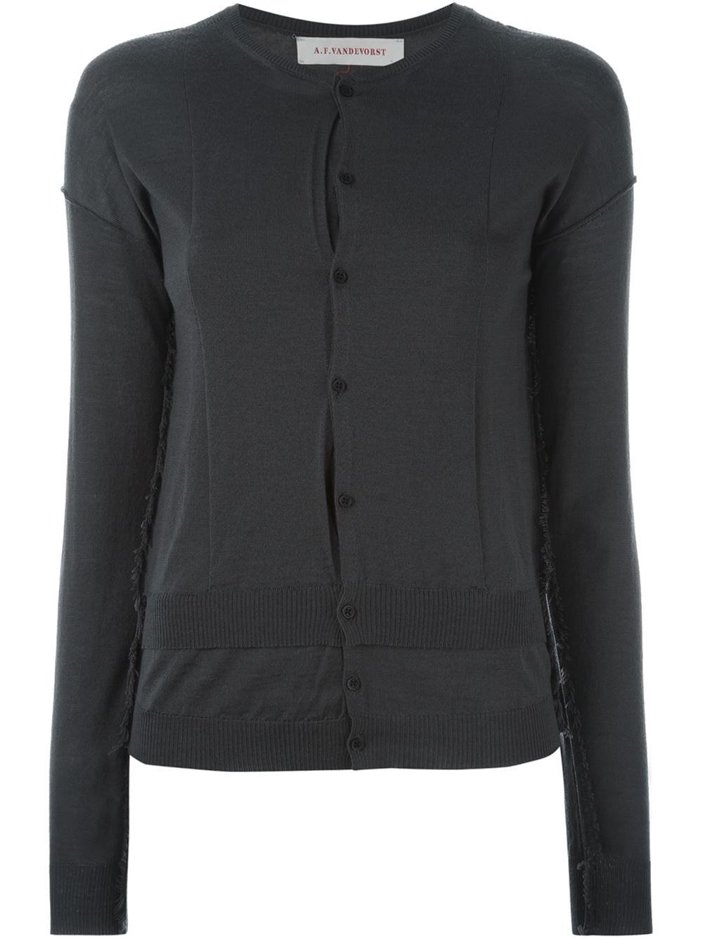 - A.F.Vandevorst 灰色 羊毛 '152 Tacco'层次开衫。 圆领, 长袖, 正面纽扣, 罗纹底边及袖口。