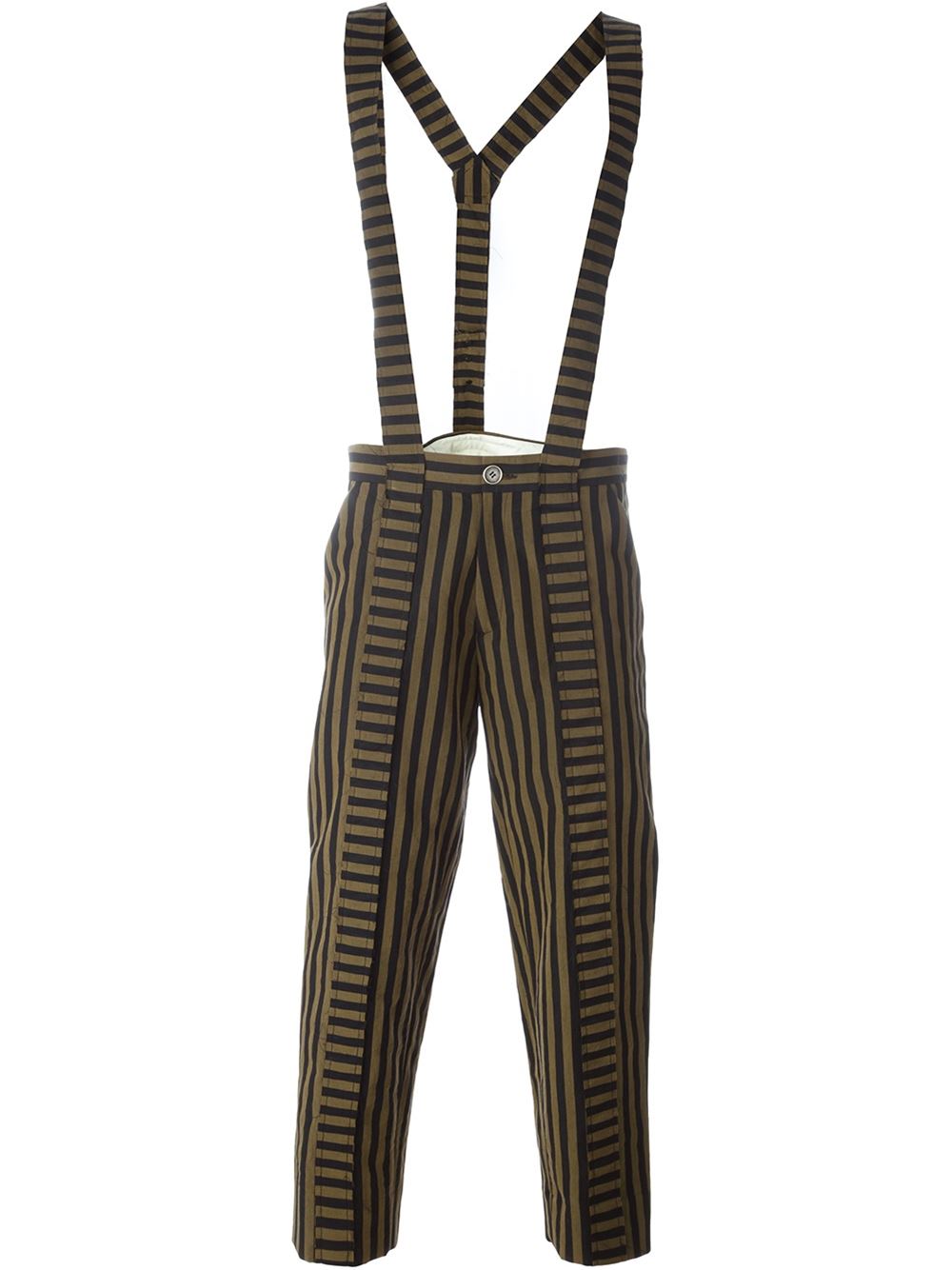 - Aganovich 黑色与褐色 棉质混纺 吊带条纹长裤。