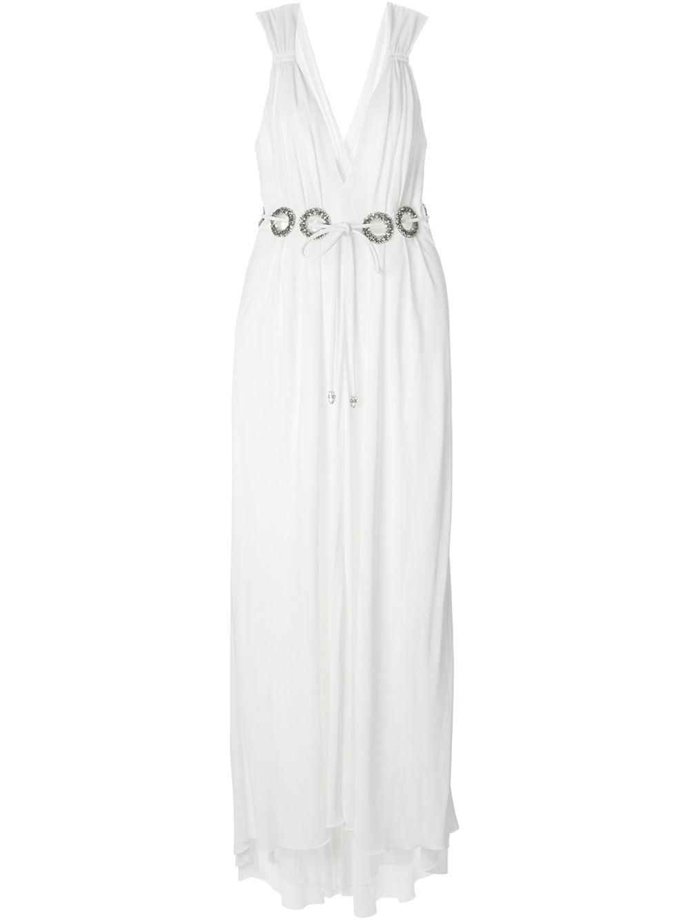 - Roberto Cavalli 白色 真丝 珠宝圆环晚礼服裙。