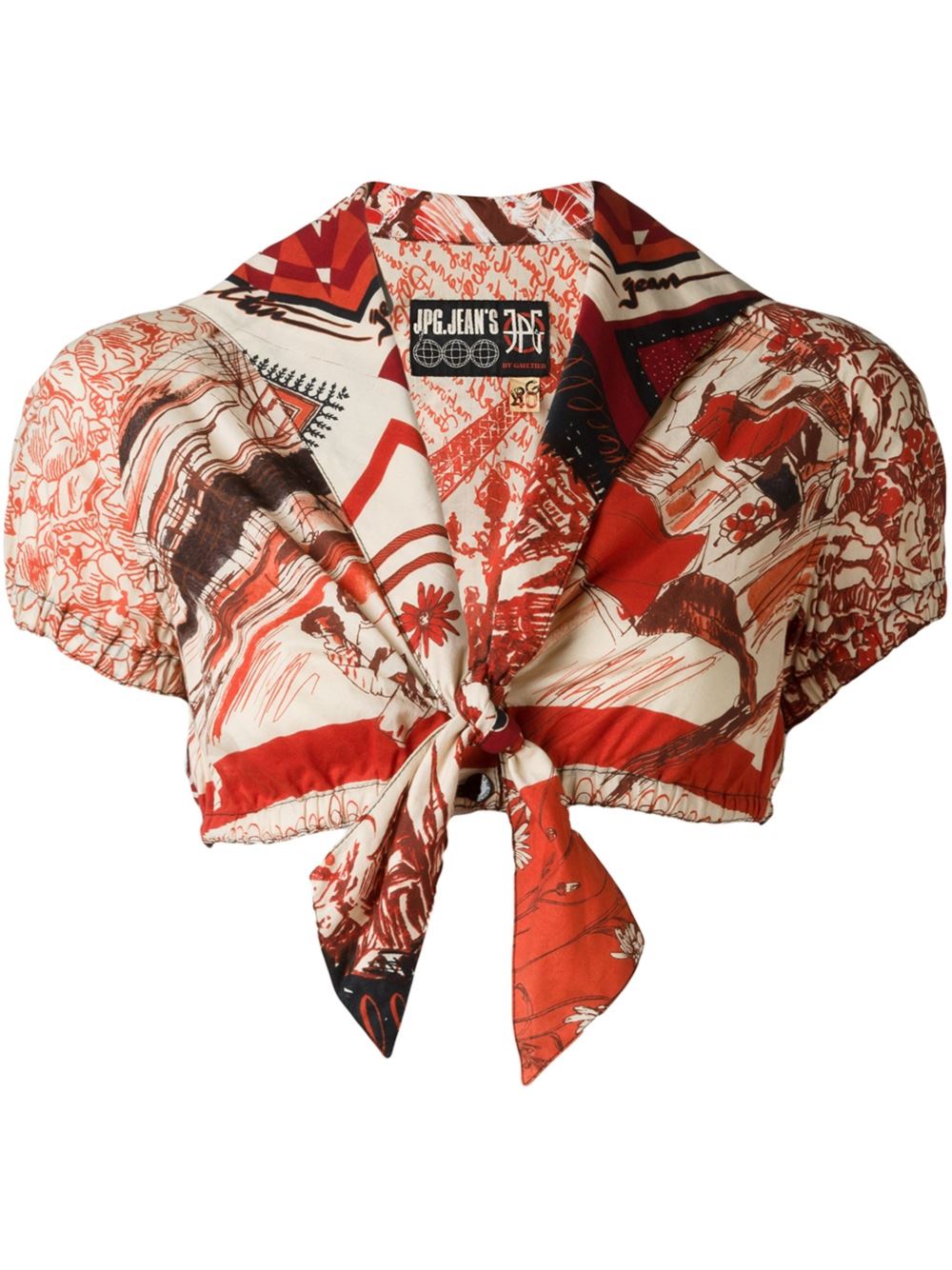 - Nude, red and black cotton printed bolero with sash from Jean Paul Gaultier Vintage featuring a v-neck, short sleeves, elasticated cuffs, a tie fastening, an all-over print, an elasticated hem and a cropped length. Please note that vintage items are not new and therefore might have minor imperfections.