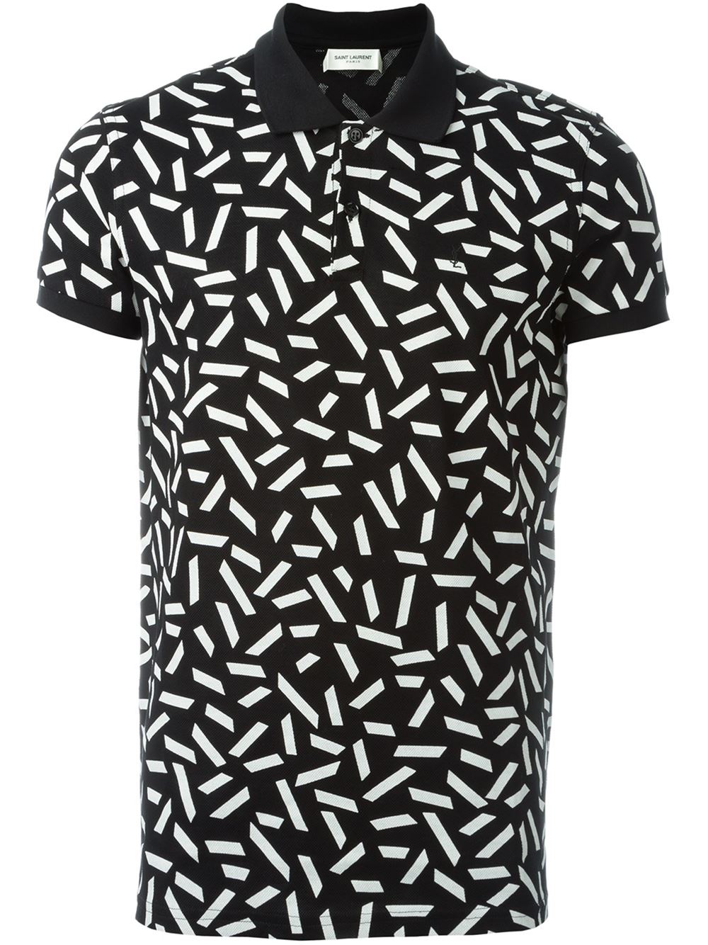 - Saint Laurent 黑色与白色 全棉 条纹印花polo衫。 罗纹Polo领, 正面饰有刺绣标志, 正面竖排纽扣, 短袖, 罗纹袖口, 平直下摆。