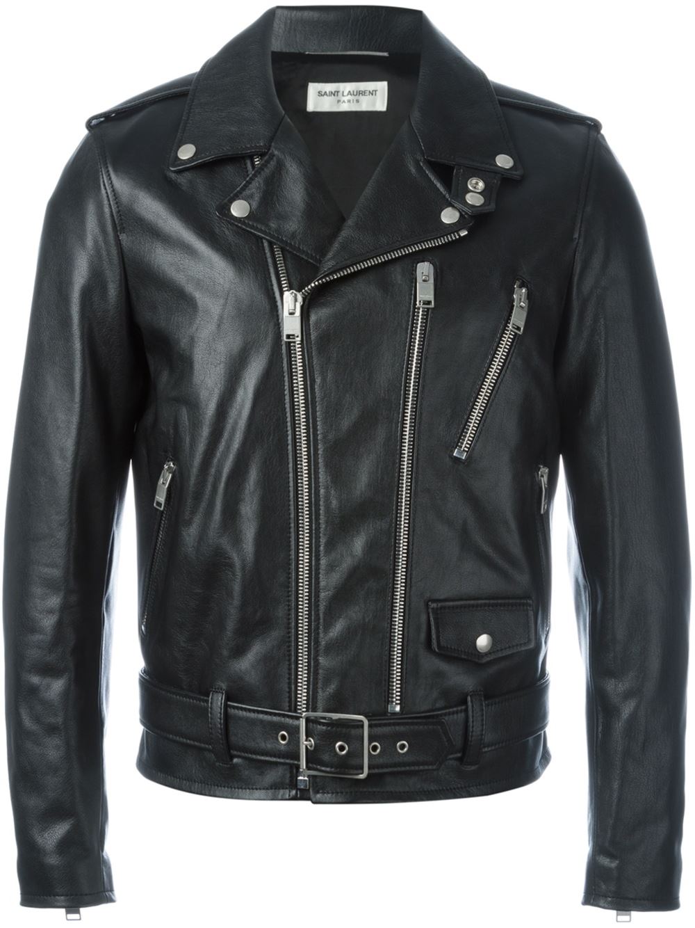 - Saint Laurent 黑色 全棉与小羊皮 皮革机车夹克。 经典衣领, 偏中心正面拉链, 正面拉链口袋, 肩章, 长袖, 拉链袖口, 平直下摆, 全衬里。这件商品尺码适中。