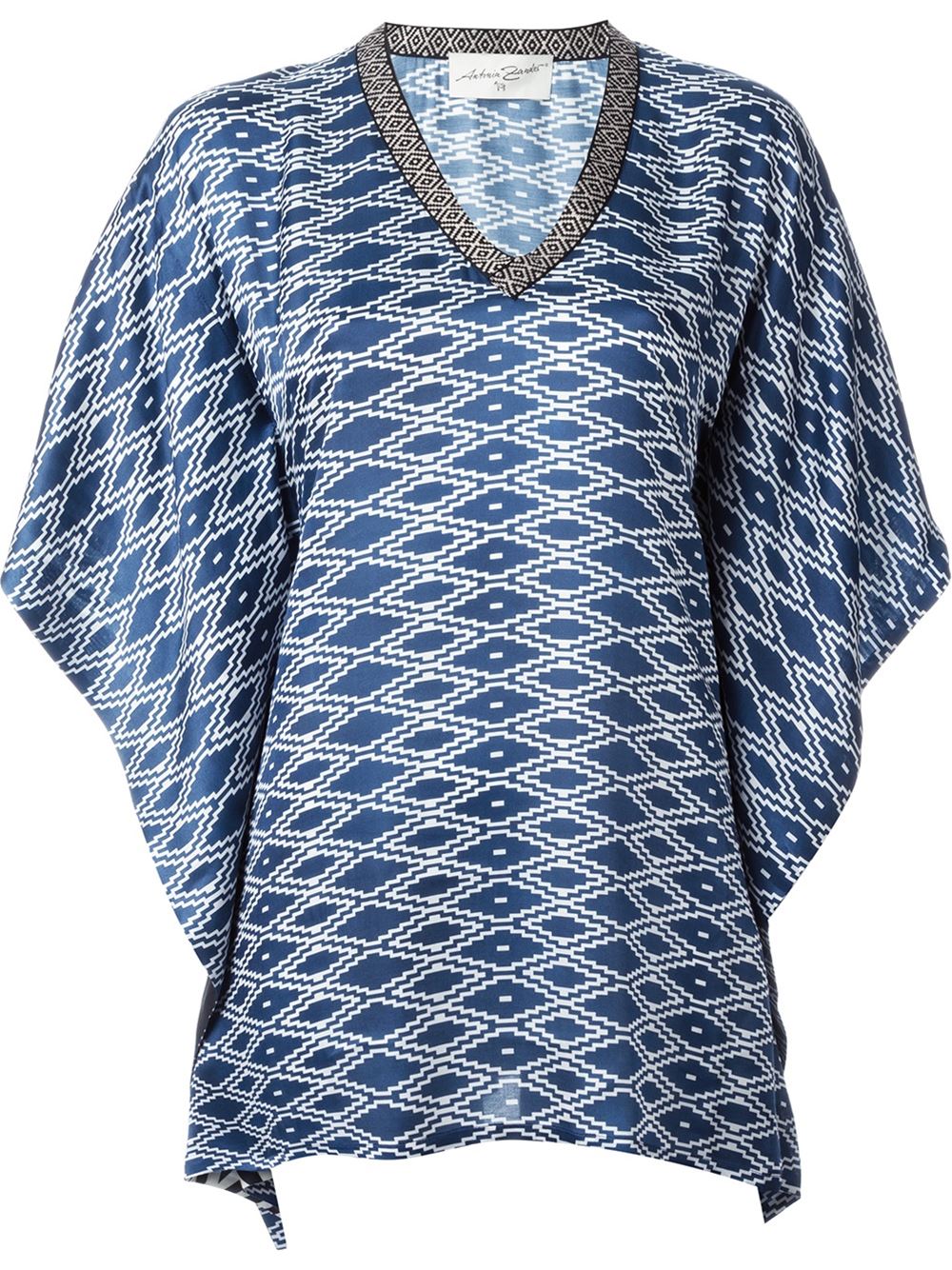 - Antonia Zander 蓝色与白色 丝绸混纺 'Capri'罩衫。