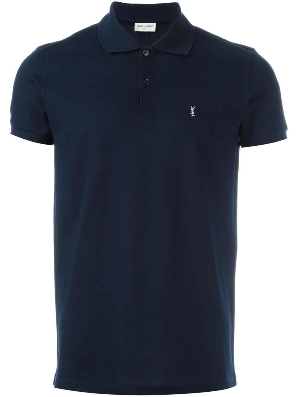 - Saint Laurent 蓝色 全棉 logo刺绣polo衫。 经典Polo领, 正面竖排纽扣, 胸前饰有刺绣品牌标志, 短袖, 罗纹袖口, 平直下摆。