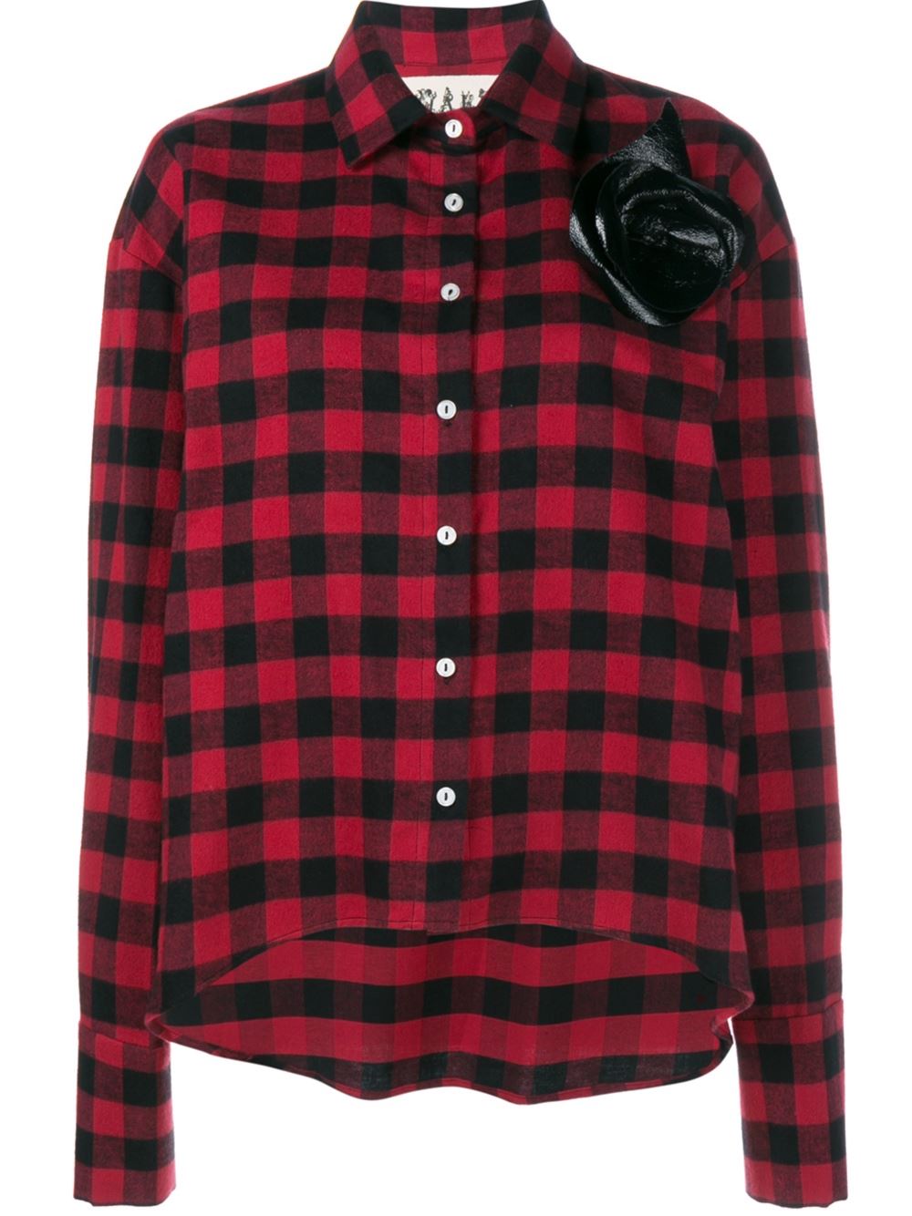 - Awake 红色与黑色 棉质 方格衬衫。 经典衣领, 方格印花, 正面竖排纽扣, 长袖, 搭扣袖口, 曲线形底边。