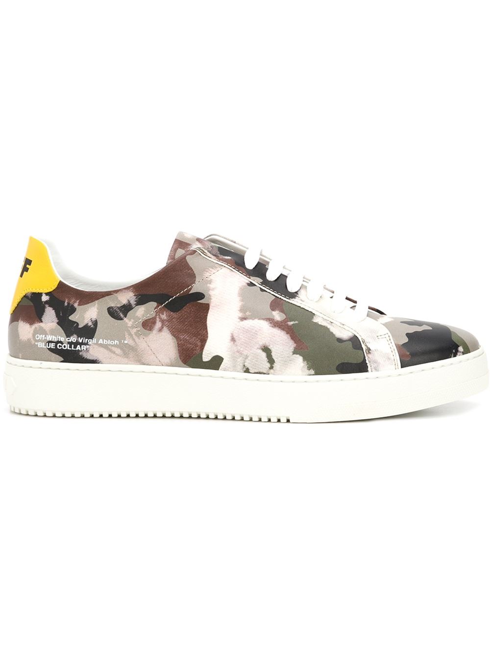 - Off-White 黑色与多色 牛皮 迷彩效果板鞋。请注意,这件商品上的印花与图片所显示的可能有些许出入。