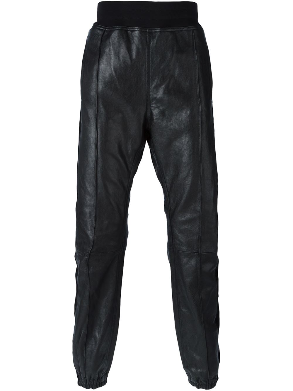 - Haider Ackermann 黑色 真皮与弹性棉 丝绒条纹拼接休闲裤。