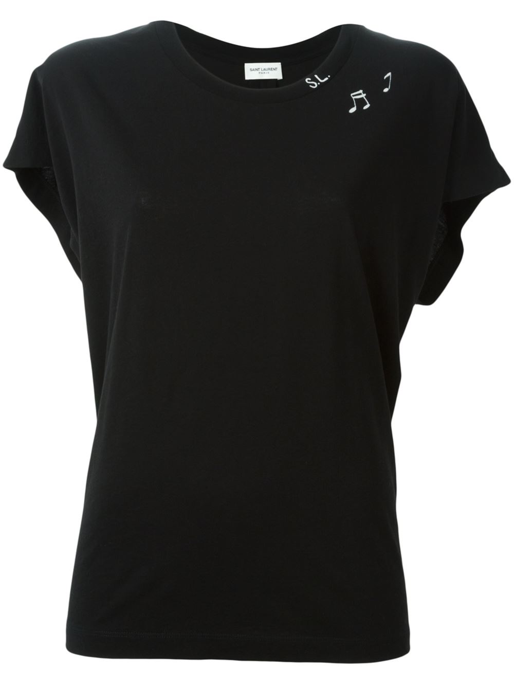 - Saint Laurent 黑色 全棉 音符印花T恤。 圆领, 短袖, 平直下摆, 特大款。