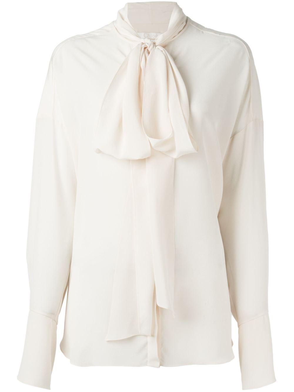 - Chloé 米白色 丝绸 蝴蝶结衬衫。 蝴蝶结, 隐藏式正面竖排纽扣, 长袖, 搭扣袖口, 半透明设计, 平直下摆。
