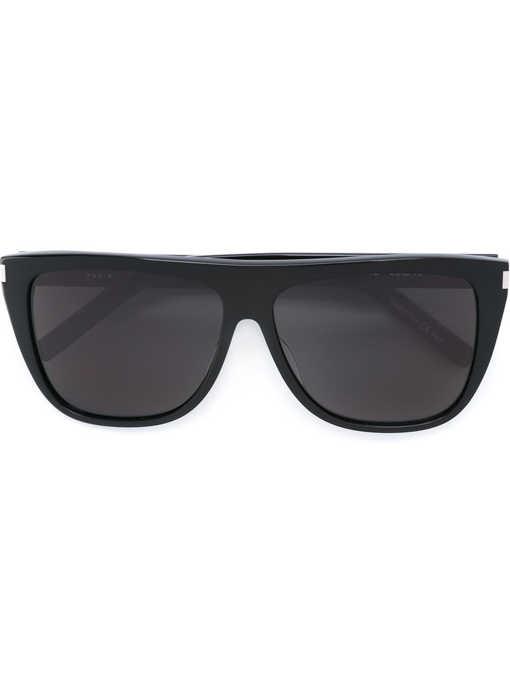 - Saint Laurent 黑色 醋酸纤维 平顶太阳眼镜。 Wayfarer镜框, 有色镜片, 镜腿外带品牌标志, 银色五金配件。